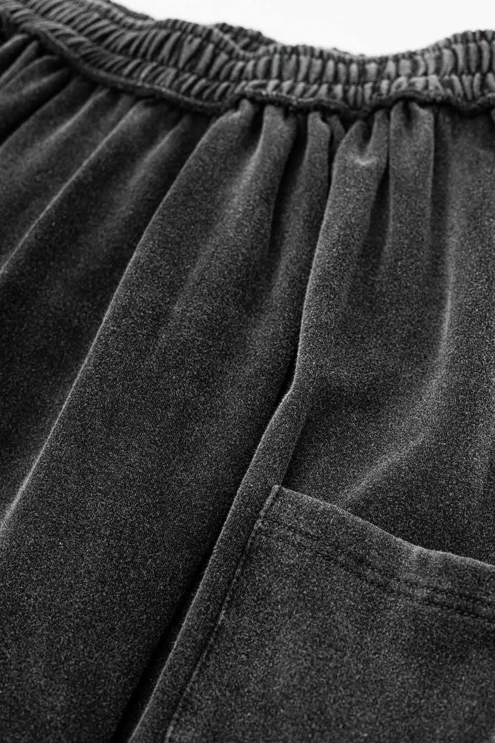 Grey jogger pants with elastic waist and pocket side
