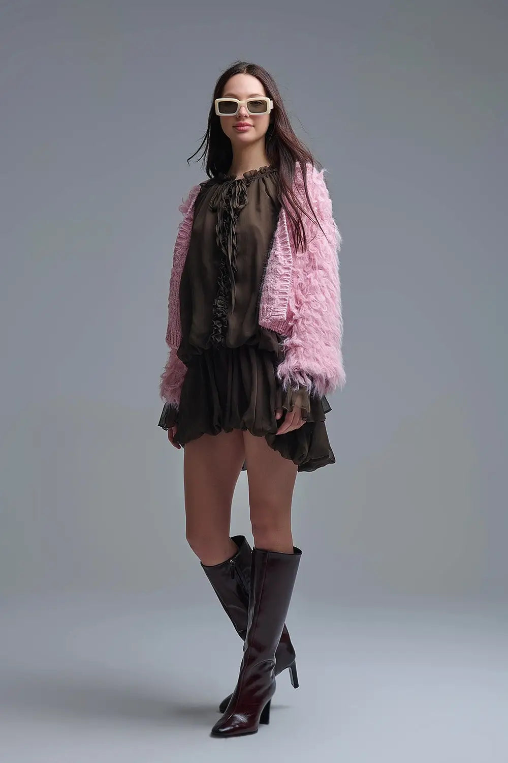 Dropped Waist Romantic Chiffon Brown Dress