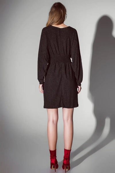 Elegant and sophisticated, our black glitter dress features a deep V-neck and long sleeves with a mini length and tiered hem for a stunning party look. Made with luxurious lurex fabric and a zip-back fastening, this dress boasts a plunge neckline and runs true to size.