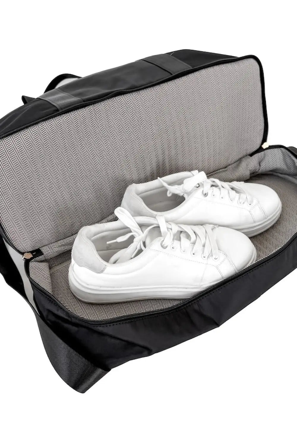 • Includes 3 interior pockets, an ID holder, a trolly sleeve, an adjustable and removable strap, and a bottom shoe compartment