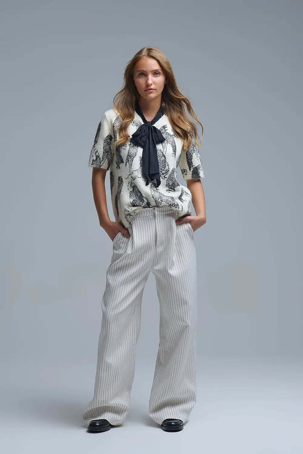Chic Cream Animal-Print Short-Sleeve Sweater