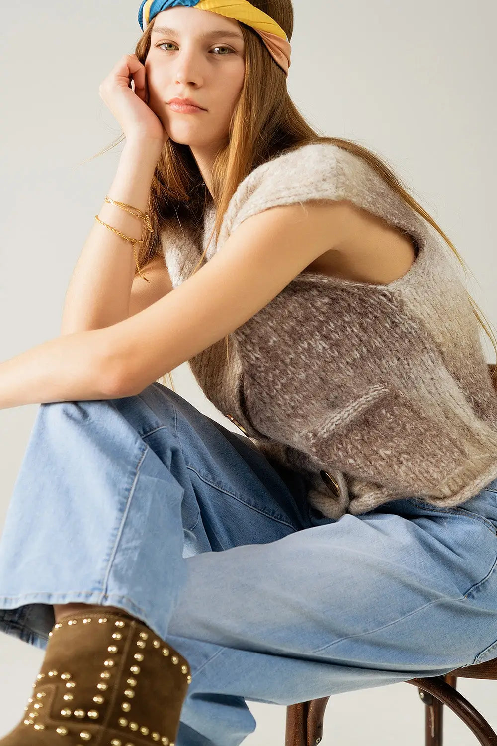 This luxurious vest boasts a cropped length and features a stylish crew neckline, perfect for daily wear. The sleeveless style, cable knit detail, and chunky knit fabric provide an elegant and tasteful touch. Complete with side pockets for convenience and a true-to-size fit. One size fits small through large.