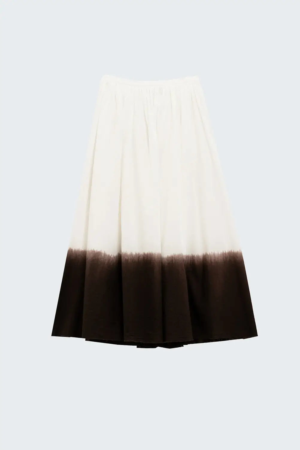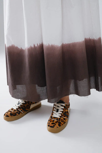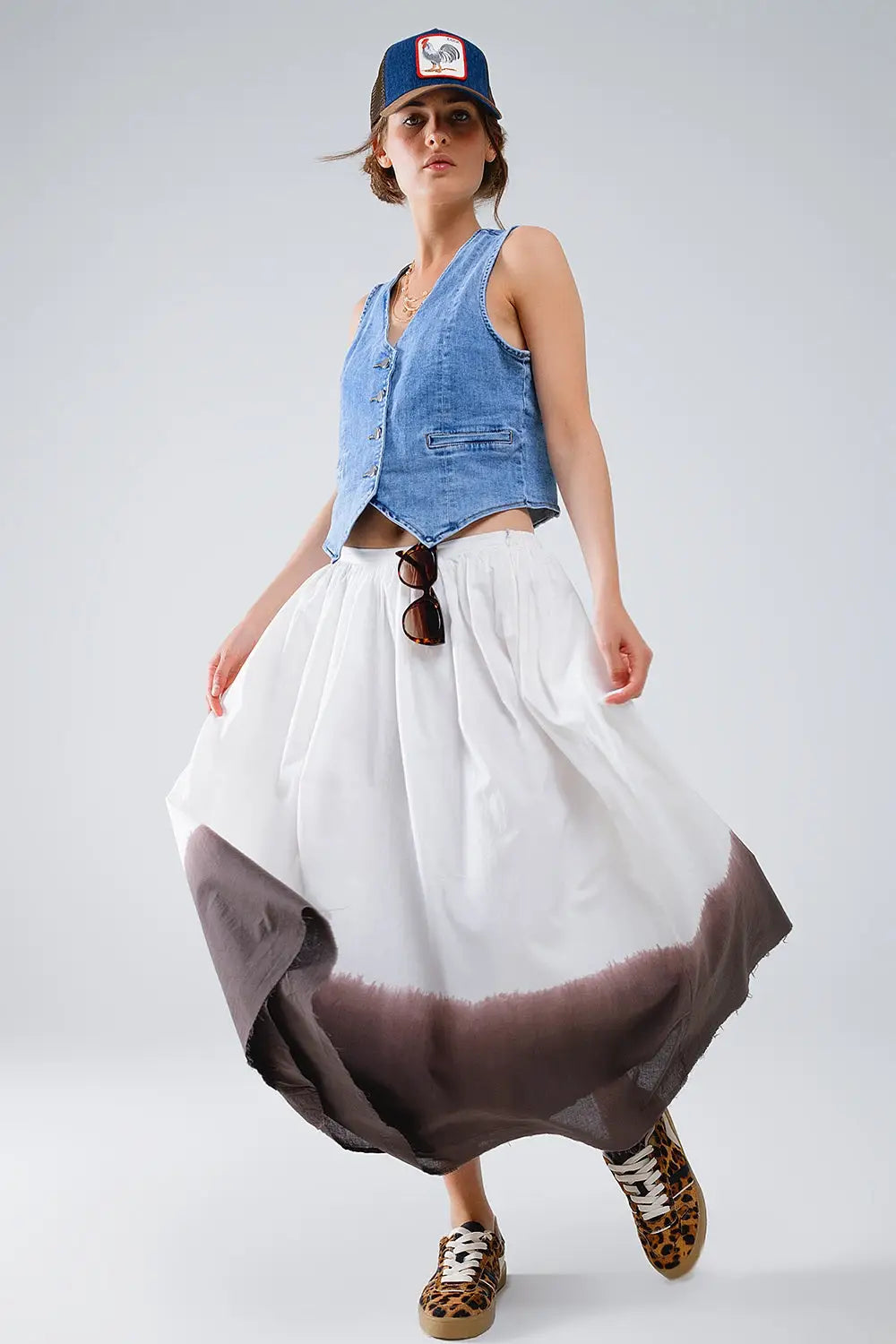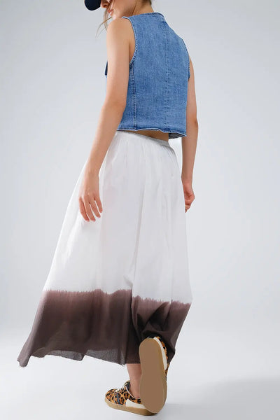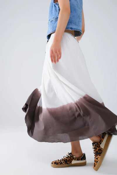 Flowy Drop Waist White Skirt With Brown Ombre Detail