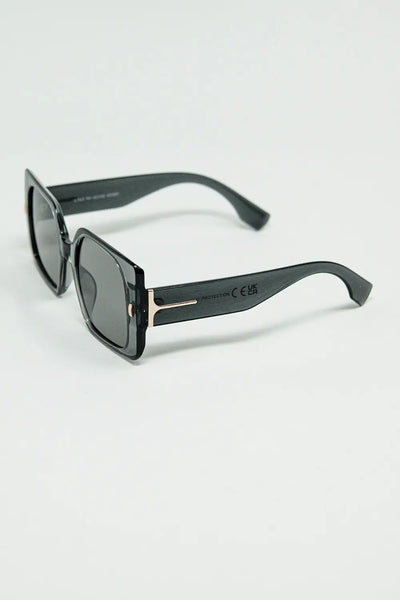 Grey square sunglasses with gold detail on the side