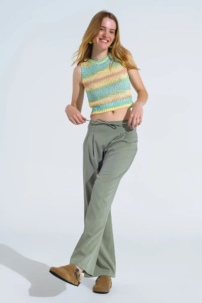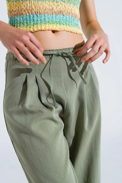 Light Green Relaxed Pants With Drawstring Closing And Side Pockets