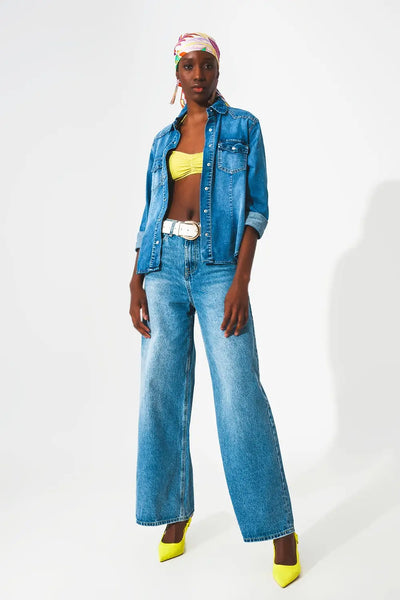 Subcategory: Shirts. Collar: Wide collar neckline. Sleeves: Long Sleeves. Fit: Bodycon fit. Style: Casual. Jean type: Basic. Fabric: Stretch denim. Pockets: Chest pockets. Zipper: Press-stud placket. Product details: Functional pockets. runs true to size. S.